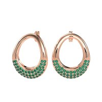 These 18K Rose Gold Emerald earrings feature top quality Natural Emerald gemstones. Elevate Your Style With These Unique Oval-shaped Hoop Earrings. Their Distinctive Silhouette Is Beautifully Adorned With A Dazzling Cluster Of Gemstones Along The Bottom Curve, Offering A Brilliant Touch Of Sparkle. Free shipping, returns, and a lifetime warranty make luxury worry-free