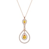 This Citrine and Lab Diamond Necklace is casted in 14K Rose Gold. This Women’s Fashion necklace features exceptionally fine gemstones, on par with those found in the world's most exclusive boutiques and among the top 10% available globally. This Teardrop Pendant Showcases A Pear-shaped Center Stone Embraced By A Teardrop-shaped Halo. The Design Is Further Enhanced By An Outer Teardrop Halo, Creating A Captivating And Layered Effect. This necklace comes with a complimentary 18-inch chain. Enjoy the confidence of our 30-day, stress-free return policy—with return shipping fully covered. Each piece is also accompanied by a Lifetime Warranty, ensuring lasting beauty and peace of mind.