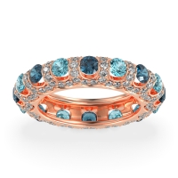 This 18K Rose Gold London Blue Topaz wedding ring features gemstones, along with fine quality Swiss Blue Topaz and Diamond. We only use the top 10% of gemstones available. This women's ring can be worn as a London Blue Topaz wedding band, or even as an addition to your London Blue Topaz rings collection. This Eternity Band Features Larger, Tension-set Center Stones Surrounded By A Continuous Halo Of Smaller Diamonds, Creating A Dazzling 360-degree Sparkle. This product comes with Free Shipping, Free Returns, Free Resize and a lifetime warranty. Choose from a variety of gems and metals to make a truly unique custom band!.