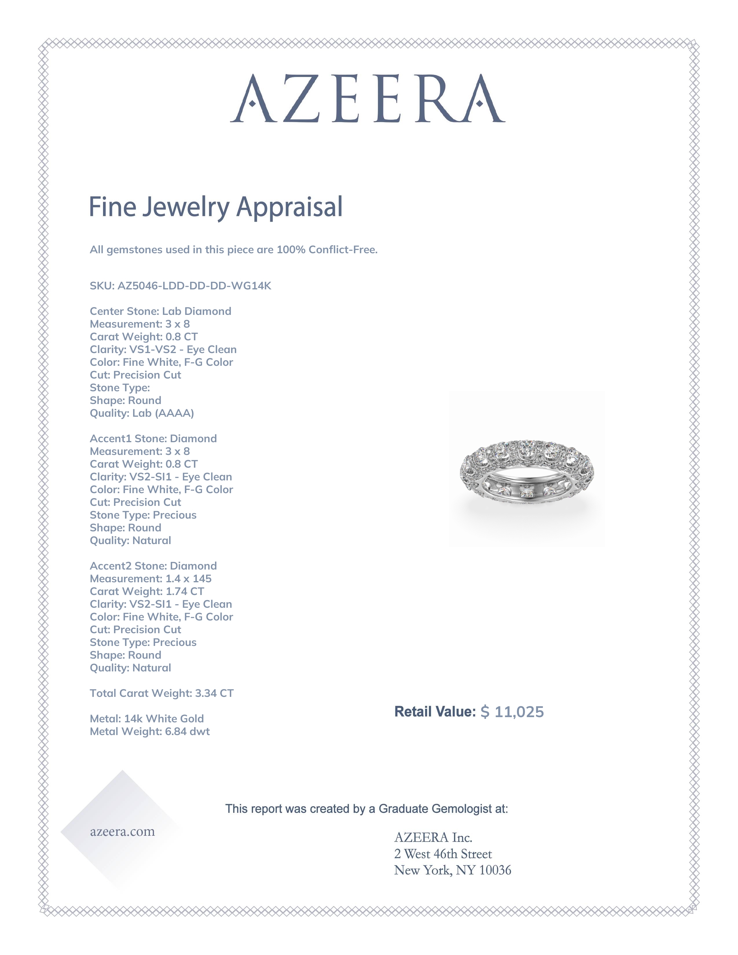 This Lab Diamond wedding ring is casted in 14k White Gold and set with fine quality Lab Diamond and Diamond. All of the gemstones we use are of the top 10% available, those found in fine quality boutiques across the world. This Lab Diamond wedding band can also be added to your collection of minimalist Lab Diamond rings. This Eternity Band Features Larger, Tension-set Center Stones Surrounded By A Continuous Halo Of Smaller Diamonds, Creating A Dazzling 360-degree Sparkle. Free shipping, returns, resizing, and a lifetime warranty ensure you love your purchase.