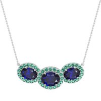This Blue Sapphire and Emerald Necklace is casted in 14k White Gold. This Women’s Halo necklace features exceptionally fine gemstones, on par with those found in the world's most exclusive boutiques and among the top 10% available globally. Striking Pendant Showcasing Three Oval-shaped Gems Aligned Horizontally, Each Framed By A Sparkling Halo Of Smaller Stones. A Bold And Radiant Statement Piece. This necklace comes with a complimentary 18-inch chain. Enjoy the confidence of our 30-day, stress-free return policy—with return shipping fully covered. Each piece is also accompanied by a Lifetime Warranty, ensuring lasting beauty and peace of mind.
