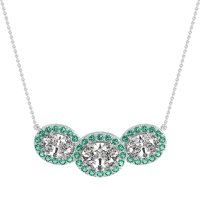 This Diamond and Emerald Necklace is casted in 14k White Gold. This Women’s Halo necklace features exceptionally fine gemstones, on par with those found in the world's most exclusive boutiques and among the top 10% available globally. Striking Pendant Showcasing Three Oval-shaped Gems Aligned Horizontally, Each Framed By A Sparkling Halo Of Smaller Stones. A Bold And Radiant Statement Piece. This necklace comes with a complimentary 18-inch chain. Enjoy the confidence of our 30-day, stress-free return policy—with return shipping fully covered. Each piece is also accompanied by a Lifetime Warranty, ensuring lasting beauty and peace of mind.