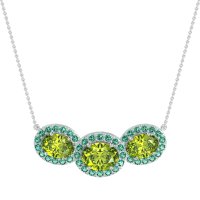 This Peridot and Emerald Necklace is casted in 14k White Gold. This Women’s Halo necklace features exceptionally fine gemstones, on par with those found in the world's most exclusive boutiques and among the top 10% available globally. Striking Pendant Showcasing Three Oval-shaped Gems Aligned Horizontally, Each Framed By A Sparkling Halo Of Smaller Stones. A Bold And Radiant Statement Piece. This necklace comes with a complimentary 18-inch chain. Enjoy the confidence of our 30-day, stress-free return policy—with return shipping fully covered. Each piece is also accompanied by a Lifetime Warranty, ensuring lasting beauty and peace of mind.