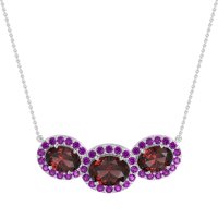 This Ruby and Amethyst Necklace is casted in 14k White Gold. This Women’s Halo necklace features exceptionally fine gemstones, on par with those found in the world's most exclusive boutiques and among the top 10% available globally. Striking Pendant Showcasing Three Oval-shaped Gems Aligned Horizontally, Each Framed By A Sparkling Halo Of Smaller Stones. A Bold And Radiant Statement Piece. This necklace comes with a complimentary 18-inch chain. Enjoy the confidence of our 30-day, stress-free return policy—with return shipping fully covered. Each piece is also accompanied by a Lifetime Warranty, ensuring lasting beauty and peace of mind.