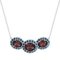 This Ruby and London Blue Topaz Necklace is casted in 14k White Gold. This Women’s Halo necklace features exceptionally fine gemstones, on par with those found in the world's most exclusive boutiques and among the top 10% available globally. Striking Pendant Showcasing Three Oval-shaped Gems Aligned Horizontally, Each Framed By A Sparkling Halo Of Smaller Stones. A Bold And Radiant Statement Piece. This necklace comes with a complimentary 18-inch chain. Enjoy the confidence of our 30-day, stress-free return policy—with return shipping fully covered. Each piece is also accompanied by a Lifetime Warranty, ensuring lasting beauty and peace of mind.
