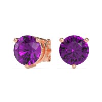 These 18K Rose Gold Amethyst earrings feature top quality Natural Amethyst gemstones. Designed For Maximum Brilliance And Minimal Distraction, Our Three-Prong Martini Stud Earrings Feature A Round Center Stone Cradled In An Elegant, Tapered Setting That Sits Closer To The Ear. The Three-prong Design Offers A Refined, Open Look While Allowing More Light To Enter The Stone For Enhanced Sparkle. Free shipping, returns, and a lifetime warranty make luxury worry-free
