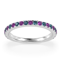 This London Blue Topaz wedding ring is casted in Platinum and set with fine quality London Blue Topaz and Amethyst. All of the gemstones we use are of the top 10% available, those found in fine quality boutiques across the world. This London Blue Topaz wedding band can also be added to your collection of minimalist London Blue Topaz rings. Complete Your Ring Stack with This Glamorous Three-quarter Eternity Pave Band. Free shipping, returns, resizing, and a lifetime warranty ensure you love your purchase.