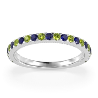 This Peridot wedding ring is casted in Palladium and set with fine quality Peridot and Blue Sapphire. All of the gemstones we use are of the top 10% available, those found in fine quality boutiques across the world. This Peridot wedding band can also be added to your collection of minimalist Peridot rings. Complete Your Ring Stack with This Glamorous Three-quarter Eternity Pave Band. Free shipping, returns, resizing, and a lifetime warranty ensure you love your purchase.