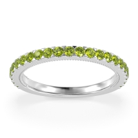 This Peridot wedding ring is set with AAAA Peridot, amongst the top 10% of material available. This ring can be casted in your choice of 9 metals. Peridot rings can be worn as gemstone wedding rings, or can even be stacked with your other gemstone rings. Complete Your Ring Stack with This Glamorous Three-quarter Eternity Pave Band. Choose from a variety of gems and metals to make truly unique custom rings! Free shipping, returns, resizing, and a lifetime warranty make choosing this product easy.