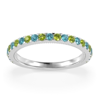 This Peridot wedding ring is casted in Platinum and set with fine quality Peridot and Swiss Blue Topaz. All of the gemstones we use are of the top 10% available, those found in fine quality boutiques across the world. This Peridot wedding band can also be added to your collection of minimalist Peridot rings. Complete Your Ring Stack with This Glamorous Three-quarter Eternity Pave Band. Free shipping, returns, resizing, and a lifetime warranty ensure you love your purchase.