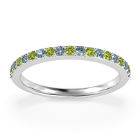 This Aquamarine wedding ring is casted in Palladium and set with fine quality Aquamarine and Peridot. All of the gemstones we use are of the top 10% available, those found in fine quality boutiques across the world. This Aquamarine wedding band can also be added to your collection of minimalist Aquamarine rings. This Classic Wedding Band, Is Perfect To Stack, Or Pair with Your Exisiting Engagment Ring. Free shipping, returns, resizing, and a lifetime warranty ensure you love your purchase.