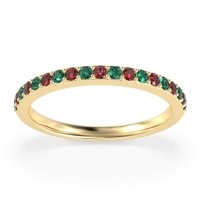 This Emerald wedding ring is casted in 18k Yellow Gold and set with fine quality Emerald and Ruby. All of the gemstones we use are of the top 10% available, those found in fine quality boutiques across the world. This Emerald wedding band can also be added to your collection of minimalist Emerald rings. This Classic Wedding Band, Is Perfect To Stack, Or Pair with Your Exisiting Engagment Ring. Free shipping, returns, resizing, and a lifetime warranty ensure you love your purchase.