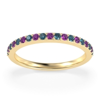 This London Blue Topaz wedding ring is casted in 18k Yellow Gold and set with fine quality London Blue Topaz and Amethyst. All of the gemstones we use are of the top 10% available, those found in fine quality boutiques across the world. This London Blue Topaz wedding band can also be added to your collection of minimalist London Blue Topaz rings. This Classic Wedding Band, Is Perfect To Stack, Or Pair with Your Exisiting Engagment Ring. Free shipping, returns, resizing, and a lifetime warranty ensure you love your purchase.