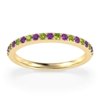 This Peridot wedding ring is casted in 14k Yellow Gold and set with fine quality Peridot and Amethyst. All of the gemstones we use are of the top 10% available, those found in fine quality boutiques across the world. This Peridot wedding band can also be added to your collection of minimalist Peridot rings. This Classic Wedding Band, Is Perfect To Stack, Or Pair with Your Exisiting Engagment Ring. Free shipping, returns, resizing, and a lifetime warranty ensure you love your purchase.