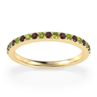 This Peridot wedding ring is casted in 14k Yellow Gold and set with fine quality Peridot and Garnet. All of the gemstones we use are of the top 10% available, those found in fine quality boutiques across the world. This Peridot wedding band can also be added to your collection of minimalist Peridot rings. This Classic Wedding Band, Is Perfect To Stack, Or Pair with Your Exisiting Engagment Ring. Free shipping, returns, resizing, and a lifetime warranty ensure you love your purchase.