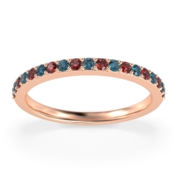 This Ruby wedding ring is casted in 18K Rose Gold and set with fine quality Ruby and London Blue Topaz. All of the gemstones we use are of the top 10% available, those found in fine quality boutiques across the world. This Ruby wedding band can also be added to your collection of minimalist Ruby rings. This Classic Wedding Band, Is Perfect To Stack, Or Pair with Your Exisiting Engagment Ring. Free shipping, returns, resizing, and a lifetime warranty ensure you love your purchase.