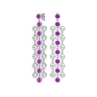 These Amethyst earrings and made in Palladium with top quality Amethyst and Lab Diamond gemstones. Indulge In Unparalleled Luxury With These Dangling Earrings. They Feature A Captivating Display Of Dangling, Bezel-set Gemstones Arranged In Three Artfully Uneven Rows, Creating A Dynamic And Opulent Sparkle. Free shipping, returns, and a lifetime warranty make luxury worry-free