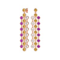 These 14K Rose Gold Citrine earrings feature fine quality with Citrine, Amethyst and Lab Diamond gemstones. Indulge In Unparalleled Luxury With These Dangling Earrings. They Feature A Captivating Display Of Dangling, Bezel-set Gemstones Arranged In Three Artfully Uneven Rows, Creating A Dynamic And Opulent Sparkle. Free shipping, returns, and a lifetime warranty make luxury worry-free.