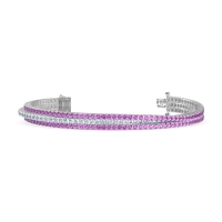 These 14k White Gold bracelets feature fine quality Amethyst gemstones. Three Rows Of Dazzling Gemstones Cascade Across This Tennis Bracelet. Unlike Traditional Tennis Bracelets, This Design Features A Flexible Construction. This Captivating Piece Seamlessly Combines Stunning Design with Everyday Wearability, Making It A Treasured Addition To Your Jewelry Collection. Free shipping, returns, and a lifetime warranty make luxury worry-free