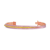 These 14K Rose Gold bracelets feature fine quality Pink Tourmaline gemstones. Three Rows Of Dazzling Gemstones Cascade Across This Tennis Bracelet. Unlike Traditional Tennis Bracelets, This Design Features A Flexible Construction. This Captivating Piece Seamlessly Combines Stunning Design with Everyday Wearability, Making It A Treasured Addition To Your Jewelry Collection. Free shipping, returns, and a lifetime warranty make luxury worry-free