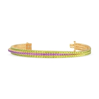 These 18k Yellow Gold bracelets feature fine quality Peridot gemstones. Three Rows Of Dazzling Gemstones Cascade Across This Tennis Bracelet. Unlike Traditional Tennis Bracelets, This Design Features A Flexible Construction. This Captivating Piece Seamlessly Combines Stunning Design with Everyday Wearability, Making It A Treasured Addition To Your Jewelry Collection. Free shipping, returns, and a lifetime warranty make luxury worry-free