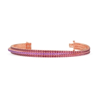 These 14K Rose Gold bracelets feature fine quality Ruby gemstones. Three Rows Of Dazzling Gemstones Cascade Across This Tennis Bracelet. Unlike Traditional Tennis Bracelets, This Design Features A Flexible Construction. This Captivating Piece Seamlessly Combines Stunning Design with Everyday Wearability, Making It A Treasured Addition To Your Jewelry Collection. Free shipping, returns, and a lifetime warranty make luxury worry-free