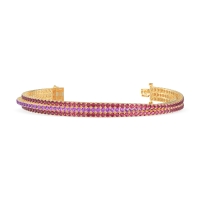 These 14k Yellow Gold bracelets feature fine quality Ruby gemstones. Three Rows Of Dazzling Gemstones Cascade Across This Tennis Bracelet. Unlike Traditional Tennis Bracelets, This Design Features A Flexible Construction. This Captivating Piece Seamlessly Combines Stunning Design with Everyday Wearability, Making It A Treasured Addition To Your Jewelry Collection. Free shipping, returns, and a lifetime warranty make luxury worry-free