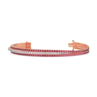 These 18K Rose Gold bracelets feature fine quality Ruby gemstones. Three Rows Of Dazzling Gemstones Cascade Across This Tennis Bracelet. Unlike Traditional Tennis Bracelets, This Design Features A Flexible Construction. This Captivating Piece Seamlessly Combines Stunning Design with Everyday Wearability, Making It A Treasured Addition To Your Jewelry Collection. Free shipping, returns, and a lifetime warranty make luxury worry-free