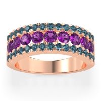 This Amethyst wedding ring is casted in 18K Rose Gold and set with fine quality Amethyst and London Blue Topaz. All of the gemstones we use are of the top 10% available, those found in fine quality boutiques across the world. This Amethyst wedding band can also be added to your collection of minimalist Amethyst rings. This Band Features A Captivating Three-row Diamond Design, with A Central Row Of Larger Diamonds Flanked By Smaller Stones. Free shipping, returns, resizing, and a lifetime warranty ensure you love your purchase.