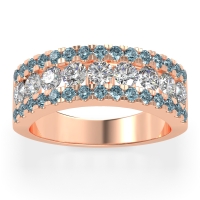 This Diamond wedding ring is casted in 18K Rose Gold and set with fine quality Diamond and Aquamarine. All of the gemstones we use are of the top 10% available, those found in fine quality boutiques across the world. This Diamond wedding band can also be added to your collection of minimalist Diamond rings. This Band Features A Captivating Three-row Diamond Design, with A Central Row Of Larger Diamonds Flanked By Smaller Stones. Free shipping, returns, resizing, and a lifetime warranty ensure you love your purchase.