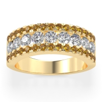 This Diamond wedding ring is casted in 18k Yellow Gold and set with fine quality Diamond and Citrine. All of the gemstones we use are of the top 10% available, those found in fine quality boutiques across the world. This Diamond wedding band can also be added to your collection of minimalist Diamond rings. This Band Features A Captivating Three-row Diamond Design, with A Central Row Of Larger Diamonds Flanked By Smaller Stones. Free shipping, returns, resizing, and a lifetime warranty ensure you love your purchase.