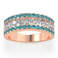 This Diamond wedding ring is casted in 14K Rose Gold and set with fine quality Diamond and Swiss Blue Topaz. All of the gemstones we use are of the top 10% available, those found in fine quality boutiques across the world. This Diamond wedding band can also be added to your collection of minimalist Diamond rings. This Band Features A Captivating Three-row Diamond Design, with A Central Row Of Larger Diamonds Flanked By Smaller Stones. Free shipping, returns, resizing, and a lifetime warranty ensure you love your purchase.