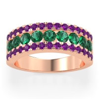 This Emerald wedding ring is casted in 18K Rose Gold and set with fine quality Emerald and Amethyst. All of the gemstones we use are of the top 10% available, those found in fine quality boutiques across the world. This Emerald wedding band can also be added to your collection of minimalist Emerald rings. This Band Features A Captivating Three-row Diamond Design, with A Central Row Of Larger Diamonds Flanked By Smaller Stones. Free shipping, returns, resizing, and a lifetime warranty ensure you love your purchase.