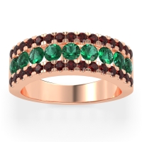 This Emerald wedding ring is casted in 18K Rose Gold and set with fine quality Emerald and Ruby. All of the gemstones we use are of the top 10% available, those found in fine quality boutiques across the world. This Emerald wedding band can also be added to your collection of minimalist Emerald rings. This Band Features A Captivating Three-row Diamond Design, with A Central Row Of Larger Diamonds Flanked By Smaller Stones. Free shipping, returns, resizing, and a lifetime warranty ensure you love your purchase.