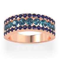 This London Blue Topaz wedding ring is casted in 18K Rose Gold and set with fine quality London Blue Topaz and Blue Sapphire. All of the gemstones we use are of the top 10% available, those found in fine quality boutiques across the world. This London Blue Topaz wedding band can also be added to your collection of minimalist London Blue Topaz rings. This Band Features A Captivating Three-row Diamond Design, with A Central Row Of Larger Diamonds Flanked By Smaller Stones. Free shipping, returns, resizing, and a lifetime warranty ensure you love your purchase.