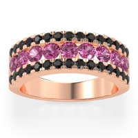 This Pink Tourmaline wedding ring is casted in 18K Rose Gold and set with fine quality Pink Tourmaline and Black Onyx. All of the gemstones we use are of the top 10% available, those found in fine quality boutiques across the world. This Pink Tourmaline wedding band can also be added to your collection of minimalist Pink Tourmaline rings. This Band Features A Captivating Three-row Diamond Design, with A Central Row Of Larger Diamonds Flanked By Smaller Stones. Free shipping, returns, resizing, and a lifetime warranty ensure you love your purchase.
