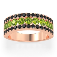 This Peridot wedding ring is casted in 14K Rose Gold and set with fine quality Peridot and Black Onyx. All of the gemstones we use are of the top 10% available, those found in fine quality boutiques across the world. This Peridot wedding band can also be added to your collection of minimalist Peridot rings. This Band Features A Captivating Three-row Diamond Design, with A Central Row Of Larger Diamonds Flanked By Smaller Stones. Free shipping, returns, resizing, and a lifetime warranty ensure you love your purchase.