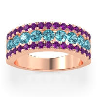 This Swiss Blue Topaz wedding ring is casted in 14K Rose Gold and set with fine quality Swiss Blue Topaz and Amethyst. All of the gemstones we use are of the top 10% available, those found in fine quality boutiques across the world. This Swiss Blue Topaz wedding band can also be added to your collection of minimalist Swiss Blue Topaz rings. This Band Features A Captivating Three-row Diamond Design, with A Central Row Of Larger Diamonds Flanked By Smaller Stones. Free shipping, returns, resizing, and a lifetime warranty ensure you love your purchase.