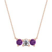 This Amethyst and Lab Diamond Necklace is casted in 14K Rose Gold. This Women’s Classic necklace features exceptionally fine gemstones, on par with those found in the world's most exclusive boutiques and among the top 10% available globally. Elegant Curved Pendant Featuring Three Round Stones Set Horizontally. A Refined And Understated Design That Adds A Touch Of Subtle Sparkle. This necklace comes with a complimentary 18-inch chain. Enjoy the confidence of our 30-day, stress-free return policy—with return shipping fully covered. Each piece is also accompanied by a Lifetime Warranty, ensuring lasting beauty and peace of mind.