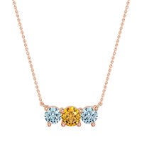 This Aquamarine and Citrine Necklace is casted in 14K Rose Gold. This Women’s Classic necklace features exceptionally fine gemstones, on par with those found in the world's most exclusive boutiques and among the top 10% available globally. Elegant Curved Pendant Featuring Three Round Stones Set Horizontally. A Refined And Understated Design That Adds A Touch Of Subtle Sparkle. This necklace comes with a complimentary 18-inch chain. Enjoy the confidence of our 30-day, stress-free return policy—with return shipping fully covered. Each piece is also accompanied by a Lifetime Warranty, ensuring lasting beauty and peace of mind.