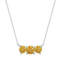 This Citrine Classic Necklace is casted in 14k White Gold. We use only exceptionally fine gemstones, truly on par with those found in the world's most exclusive boutiques and representing the top 10% available globally. Elegant Curved Pendant Featuring Three Round Stones Set Horizontally. A Refined And Understated Design That Adds A Touch Of Subtle Sparkle. You'll get a complimentary 18-inch chain with every necklace. Plus, enjoy a 30-day, hassle-free return policy (we even cover return shipping!) and a Lifetime Warranty for peace of mind.