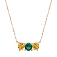 This Citrine and Emerald Necklace is casted in 18K Rose Gold. This Women’s Classic necklace features exceptionally fine gemstones, on par with those found in the world's most exclusive boutiques and among the top 10% available globally. Elegant Curved Pendant Featuring Three Round Stones Set Horizontally. A Refined And Understated Design That Adds A Touch Of Subtle Sparkle. This necklace comes with a complimentary 18-inch chain. Enjoy the confidence of our 30-day, stress-free return policy—with return shipping fully covered. Each piece is also accompanied by a Lifetime Warranty, ensuring lasting beauty and peace of mind.