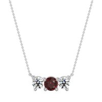 This Diamond and Ruby Necklace is casted in 18k White Gold. This Women’s Classic necklace features exceptionally fine gemstones, on par with those found in the world's most exclusive boutiques and among the top 10% available globally. Elegant Curved Pendant Featuring Three Round Stones Set Horizontally. A Refined And Understated Design That Adds A Touch Of Subtle Sparkle. This necklace comes with a complimentary 18-inch chain. Enjoy the confidence of our 30-day, stress-free return policy—with return shipping fully covered. Each piece is also accompanied by a Lifetime Warranty, ensuring lasting beauty and peace of mind.