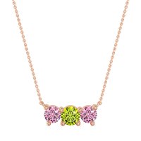 This Pink Tourmaline and Peridot Necklace is casted in 14K Rose Gold. This Women’s Classic necklace features exceptionally fine gemstones, on par with those found in the world's most exclusive boutiques and among the top 10% available globally. Elegant Curved Pendant Featuring Three Round Stones Set Horizontally. A Refined And Understated Design That Adds A Touch Of Subtle Sparkle. This necklace comes with a complimentary 18-inch chain. Enjoy the confidence of our 30-day, stress-free return policy—with return shipping fully covered. Each piece is also accompanied by a Lifetime Warranty, ensuring lasting beauty and peace of mind.