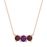 This Ruby and Amethyst Necklace is casted in 14K Rose Gold. This Women’s Classic necklace features exceptionally fine gemstones, on par with those found in the world's most exclusive boutiques and among the top 10% available globally. Elegant Curved Pendant Featuring Three Round Stones Set Horizontally. A Refined And Understated Design That Adds A Touch Of Subtle Sparkle. This necklace comes with a complimentary 18-inch chain. Enjoy the confidence of our 30-day, stress-free return policy—with return shipping fully covered. Each piece is also accompanied by a Lifetime Warranty, ensuring lasting beauty and peace of mind.