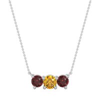 This Ruby and Citrine Necklace is casted in Platinum. This Women’s Classic necklace features exceptionally fine gemstones, on par with those found in the world's most exclusive boutiques and among the top 10% available globally. Elegant Curved Pendant Featuring Three Round Stones Set Horizontally. A Refined And Understated Design That Adds A Touch Of Subtle Sparkle. This necklace comes with a complimentary 18-inch chain. Enjoy the confidence of our 30-day, stress-free return policy—with return shipping fully covered. Each piece is also accompanied by a Lifetime Warranty, ensuring lasting beauty and peace of mind.