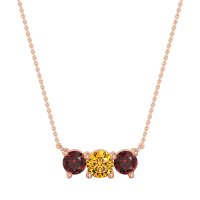 This Ruby and Citrine Necklace is casted in 14K Rose Gold. This Women’s Classic necklace features exceptionally fine gemstones, on par with those found in the world's most exclusive boutiques and among the top 10% available globally. Elegant Curved Pendant Featuring Three Round Stones Set Horizontally. A Refined And Understated Design That Adds A Touch Of Subtle Sparkle. This necklace comes with a complimentary 18-inch chain. Enjoy the confidence of our 30-day, stress-free return policy—with return shipping fully covered. Each piece is also accompanied by a Lifetime Warranty, ensuring lasting beauty and peace of mind.