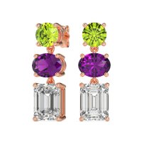 These 18K Rose Gold Amethyst earrings feature fine quality with Amethyst, Peridot and Lab Diamond gemstones. These Captivating Three-stone Dangle Earrings Showcase A Harmonious Cascade Of Round, Oval, And Emerald-cut Stones. Designed To Move Gracefully With You, They Create A Brilliant And Dynamic Sparkle That Enhances Any Look. Free shipping, returns, and a lifetime warranty make luxury worry-free.