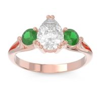 This 14K Rose Gold Diamond ring features a AAAA Pear Diamond, along with fine quality Emerald. This Ring Features A Large Pear Shape Gem in A Three Stone Setting Accented with Small Round Brilliants. We only use the top 10% of gems available, those found in the finest jewelry shops across the world. This Diamond engagement ring can also be worn as an Diamond and Emerald gemstone ring and added to your collection! Enjoy Free Shipping and Returns, Free Resize and a lifetime warranty.