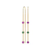 These Amethyst earrings and made in 14k Yellow Gold with top quality Natural Amethyst and Emerald gemstones. Elevate Your Look With The Delicate Allure Of Our Three-Stone Threader Earrings. Designed With A Sleek, Minimalist Threader Chain, Each Earring Features Three Shimmering Stones That Cascade Gracefully Along The Drop. The Fluid Movement And Lightweight Feel Offer A Modern Twist On Classic Elegance. Free shipping, returns, and a lifetime warranty make luxury worry-free